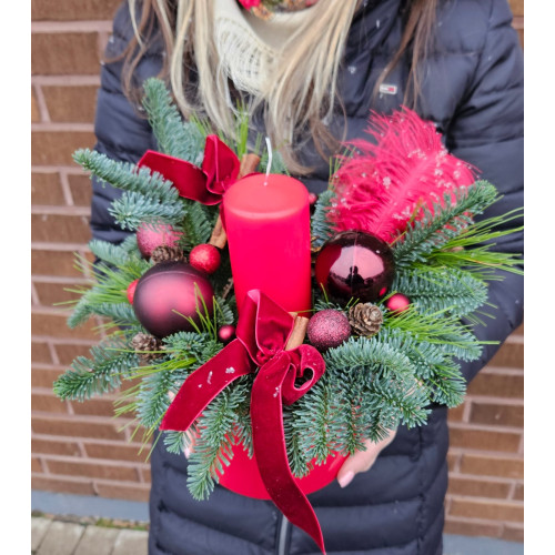 Product Code: Ziemassvētku kompozīcija podiņā ar vienu sarkanu sveci