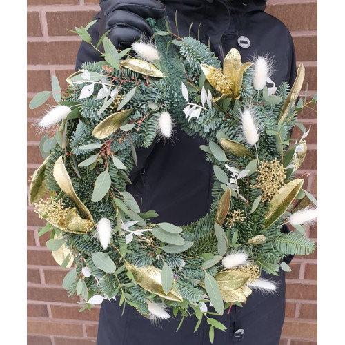 Door wreath in eco style made of natural Nobilis with eucalyptus and dried flowers, diametr 32cm.
