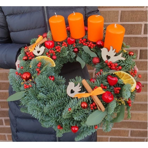 Adventes vainags ar odziņam no dzīvas Nobilis egles ar 4 svecēm, diametrs 35cm