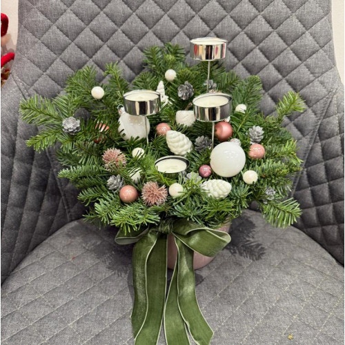 Модель: Ziemassvētku kompozīcija rozā podiņā