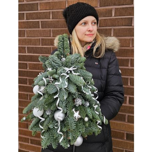 Рождественская елочка в серебрянных тонах из живой ели Нобилис, высота 40 см.